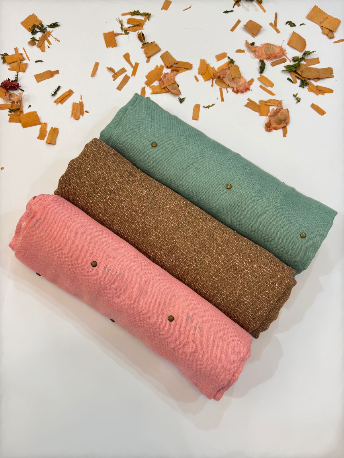 Mint green metal studded, Textured Lawn hijab and Coral Pink Metal studded