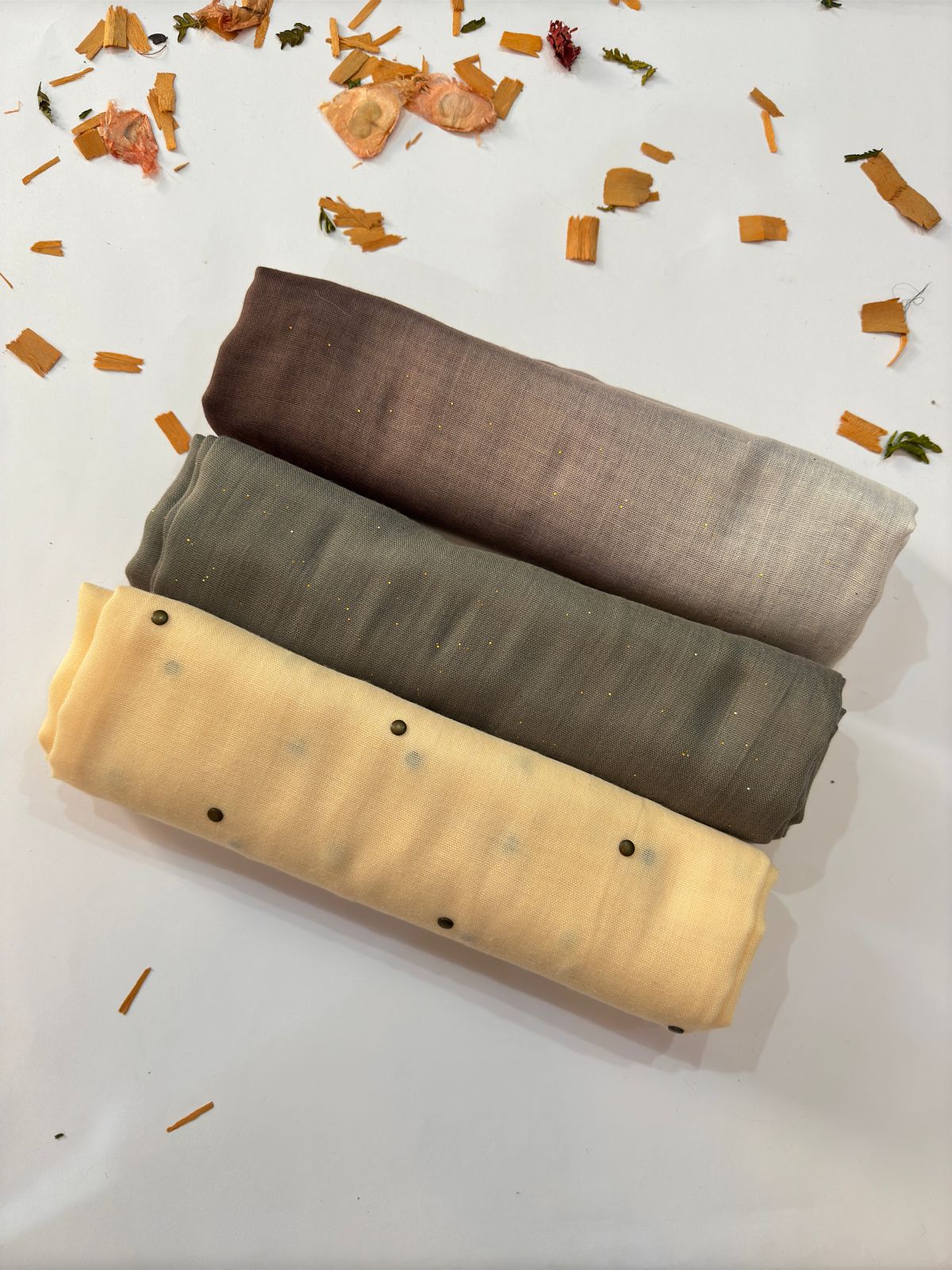 Lawn glitter ombre brown white, dark grey lawn glitter and light peach lawn metal studded