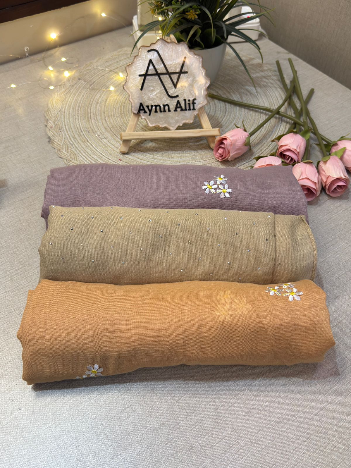 2 Floral embroidered Hijabs and Stones Studded Lawn Hijab