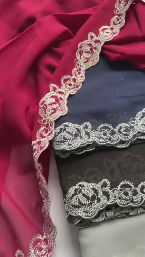 Flowy and elegant, these chiffon georgette hijabs with floral embroidery on one side will add a touch of sophistication to your look. Available in 6 stunning colours. Grab these before they stock out!