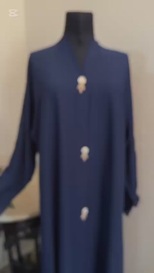 Effortlessly chic and oh-so-comfortable, this front-open crushed abaya is a must-have for your wardrobe. The intricate stone brooches at the front add a touch of elegance, while the flowy crushed fabric creates a flattering silhouette.  Paired with the matching hijab, this abaya is perfect for any occasion, from casual outings to special events.