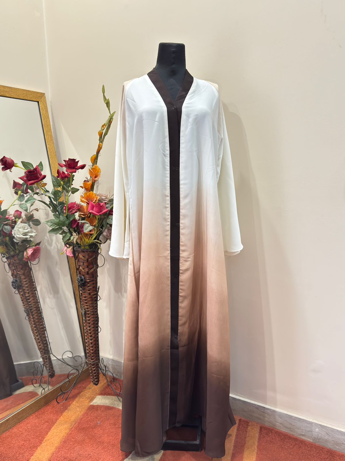 Introducing our new Ombre Abaya collection! ✨ Each abaya is a work of art, featuring a beautiful gradient of colors that will make you stand out. Made with premium Korean nida fabric, known for its luxurious feel and perfect drape, this abaya offers both comfort and style. The elegant bell sleeves add a touch of sophistication, and of course, it comes with a matching hijab for a complete look. Available in five stunning color combinations, there's an ombre abaya to suit every taste!