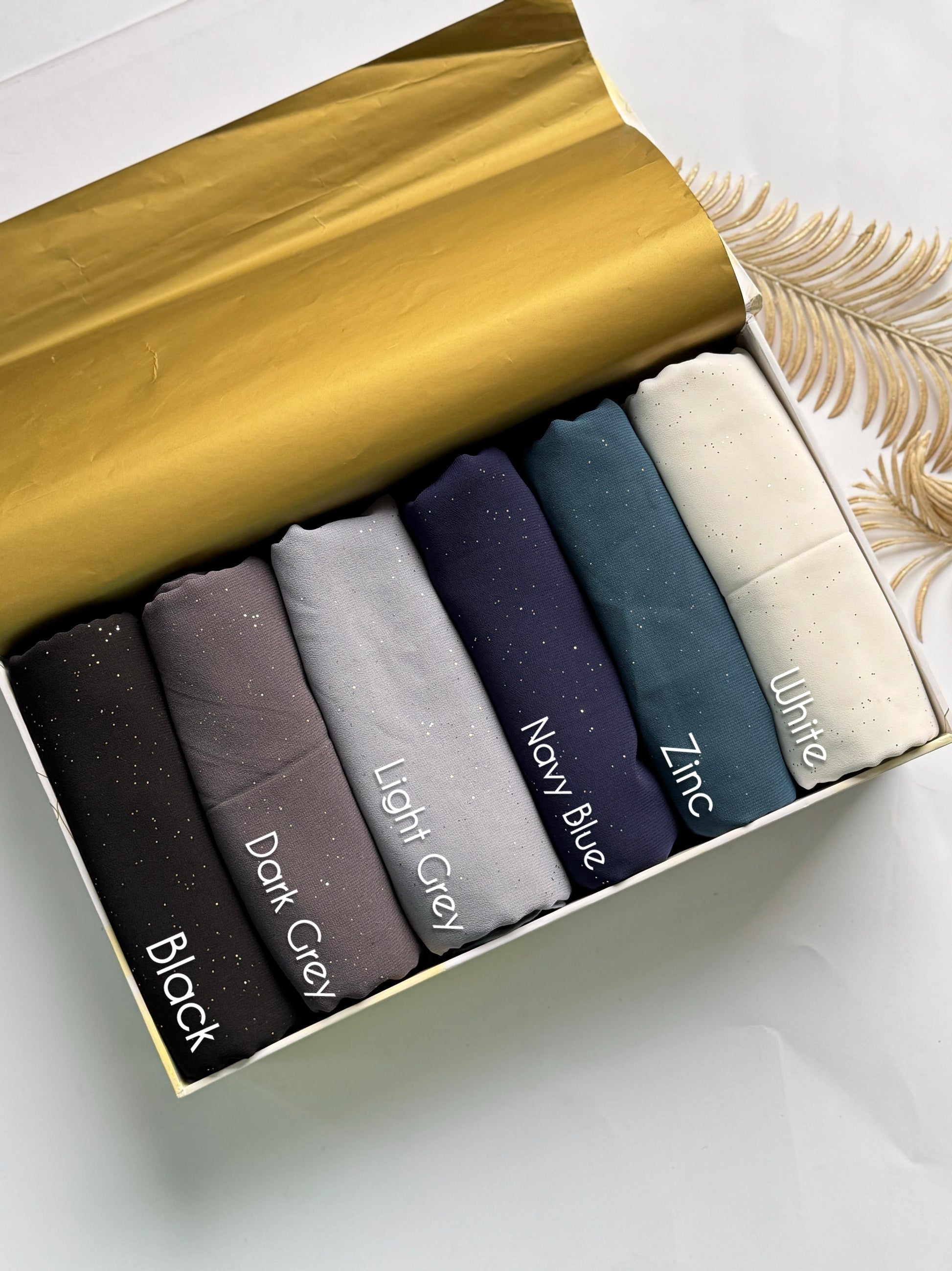 Glam up your hijab collection with our subtle yet gorgeous glitter Chiffon Georgette Hijabs. These lightweight chiffon hijabs allow for effortless folding, draping, and pleating!