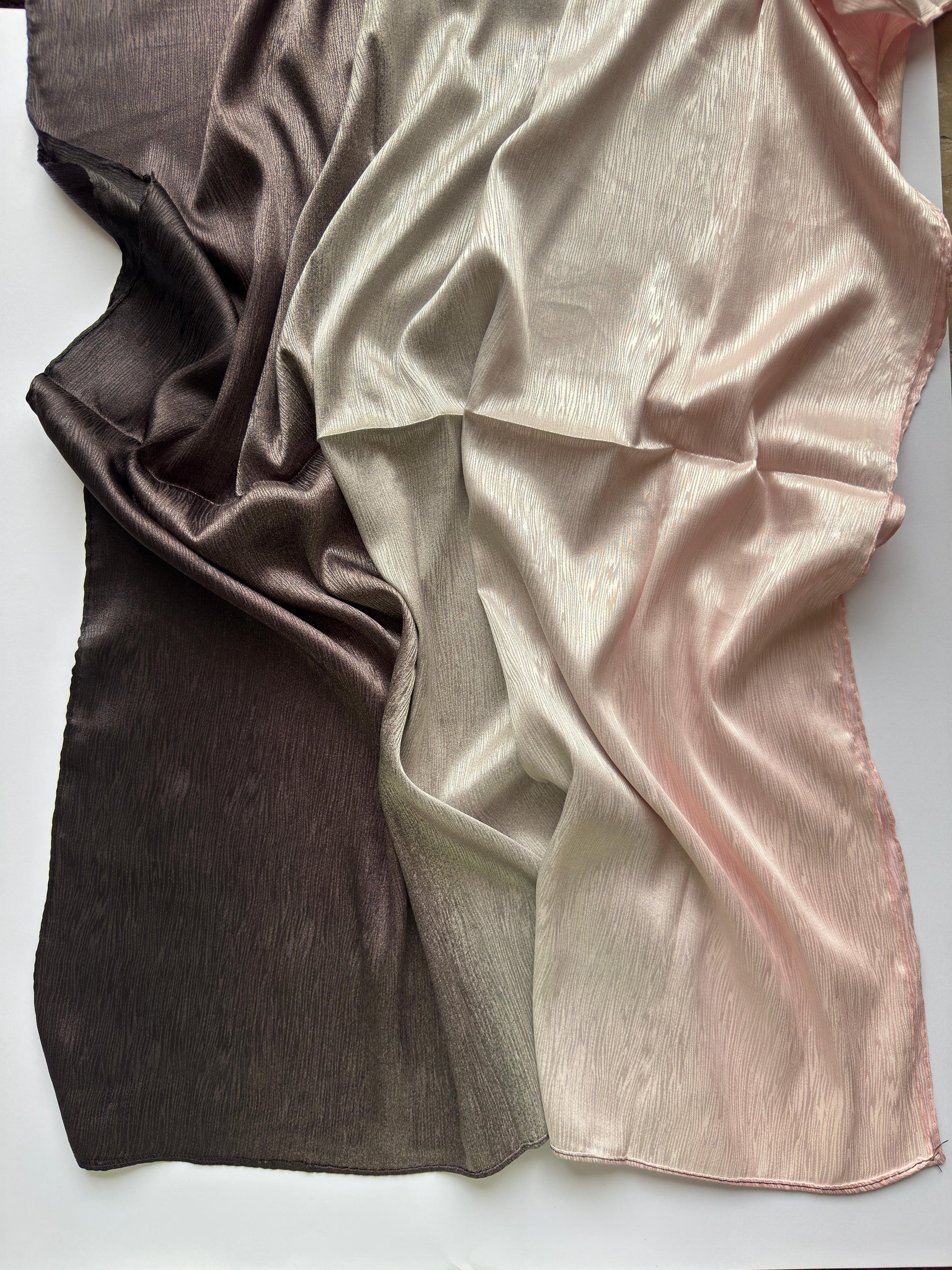 Elevate your style with our new collection of ombre silk satin hijabs! ✨ Available in 19 stunning color combinations, these flowy hijabs are perfect for formal events or adding a touch of luxury to any outfit. Give your dress the complete luxurious look it deserves!