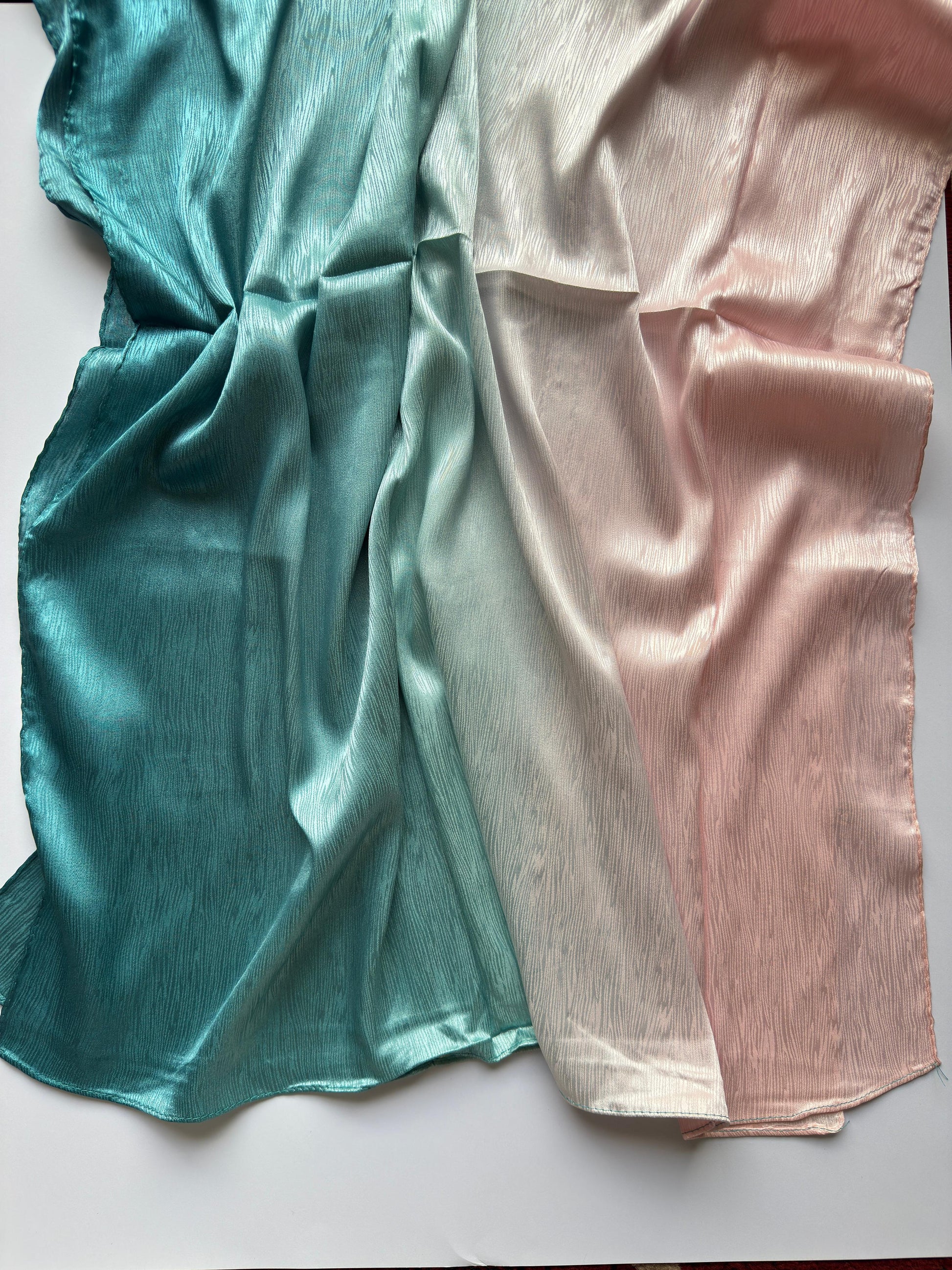 Elevate your style with our new collection of ombre silk satin hijabs! ✨ Available in 19 stunning color combinations, these flowy hijabs are perfect for formal events or adding a touch of luxury to any outfit. Give your dress the complete luxurious look it deserves!