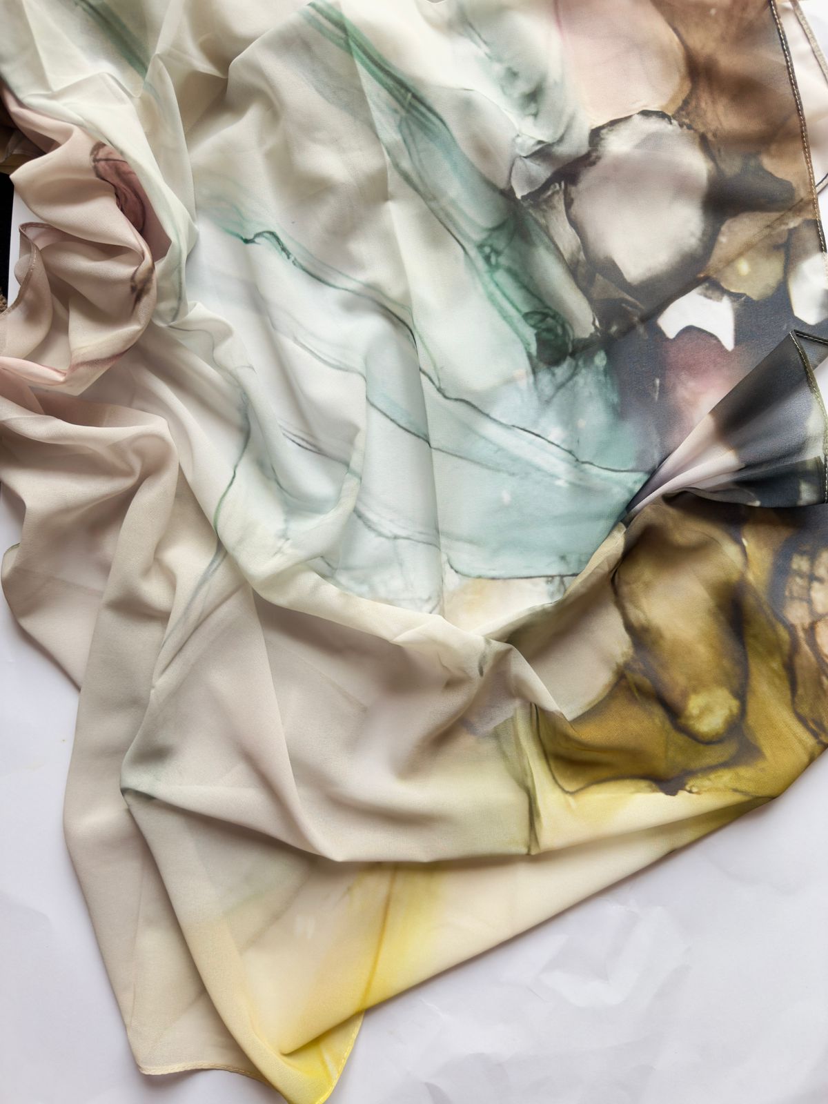 "Drape yourself in luxury with our marble print chiffon georgette hijab! ✨ Breathable, beautiful, and effortlessly chic. Get yours now! "