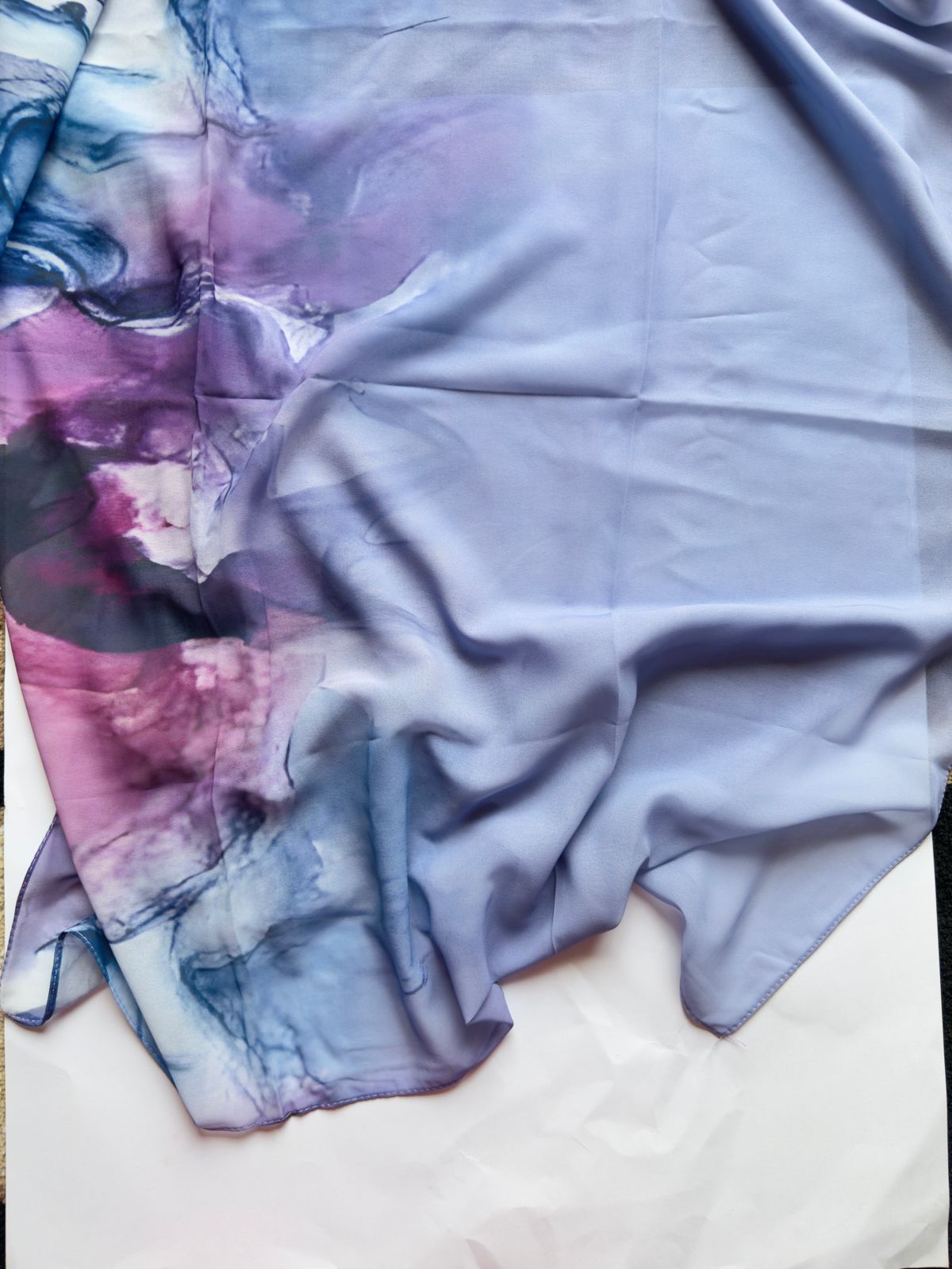 "Drape yourself in luxury with our half marble print and half plain chiffon georgette hijab! ✨ Breathable, beautiful, and effortlessly chic. Get yours now! "