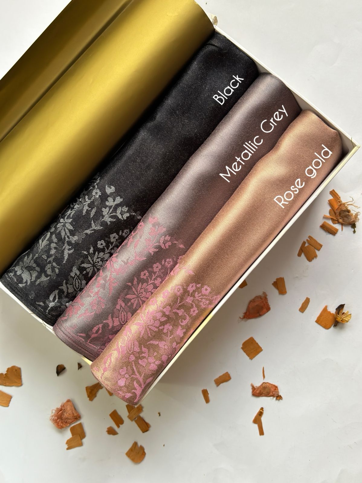 Reversible Pashmina wrap that comes in two beautiful shades. The shawl offers the border that caters to every taste and preference. Whether you're looking to make a bold fashion statement or add a subtle touch of elegance to your outfit, this wrap has you covered.