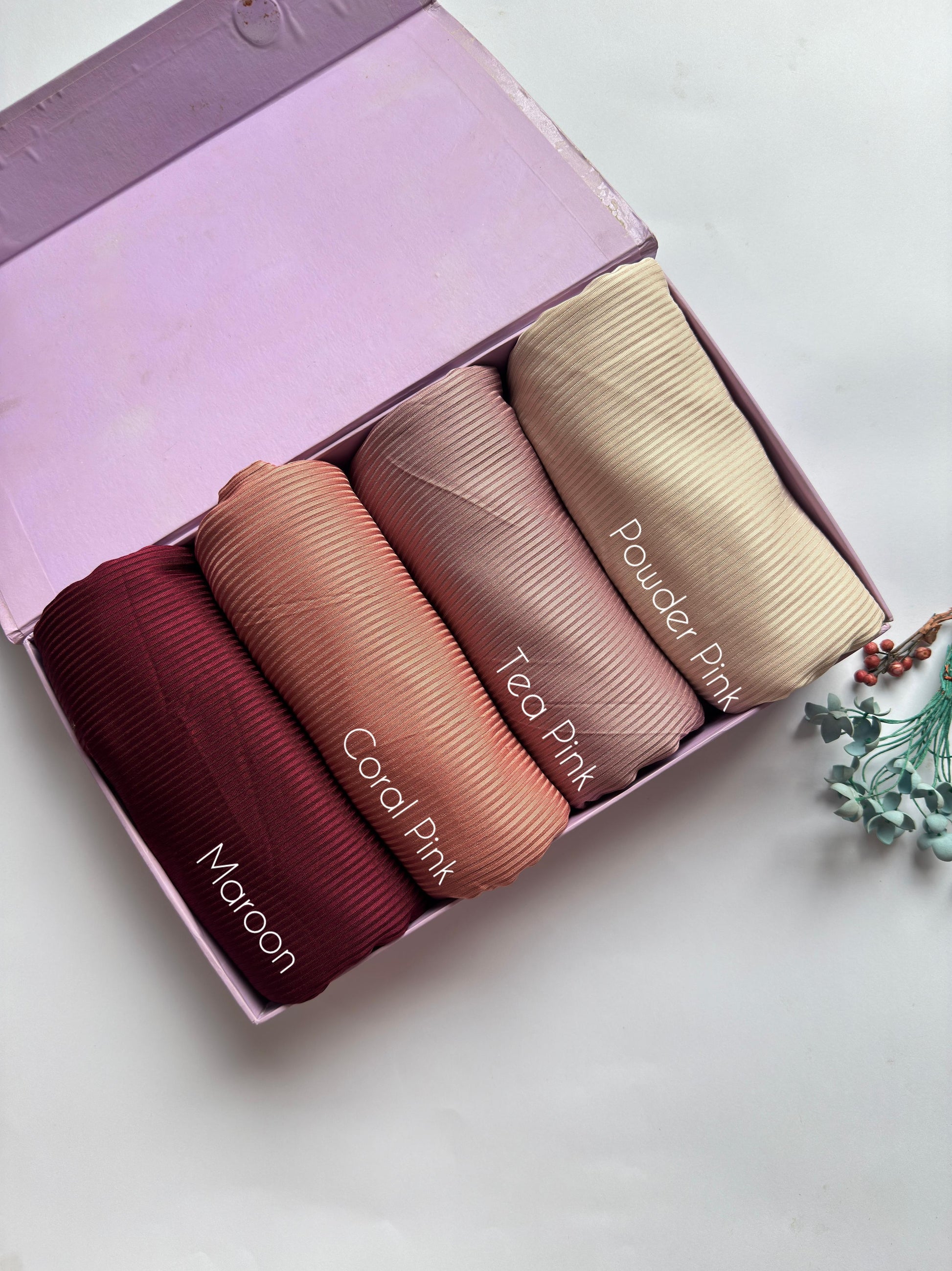 Made from a high-quality ribbed jersey fabric, these hijabs offer a unique texture that sets them apart from regular Jersey hijabs. Their non-slip and stay-in-place design means you won't have to worry about constantly adjusting your hijab throughout the day.