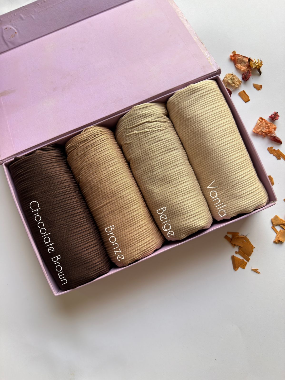 Made from a high-quality ribbed jersey fabric, these hijabs offer a unique texture that sets them apart from regular Jersey hijabs. Their non-slip and stay-in-place design means you won't have to worry about constantly adjusting your hijab throughout the day.