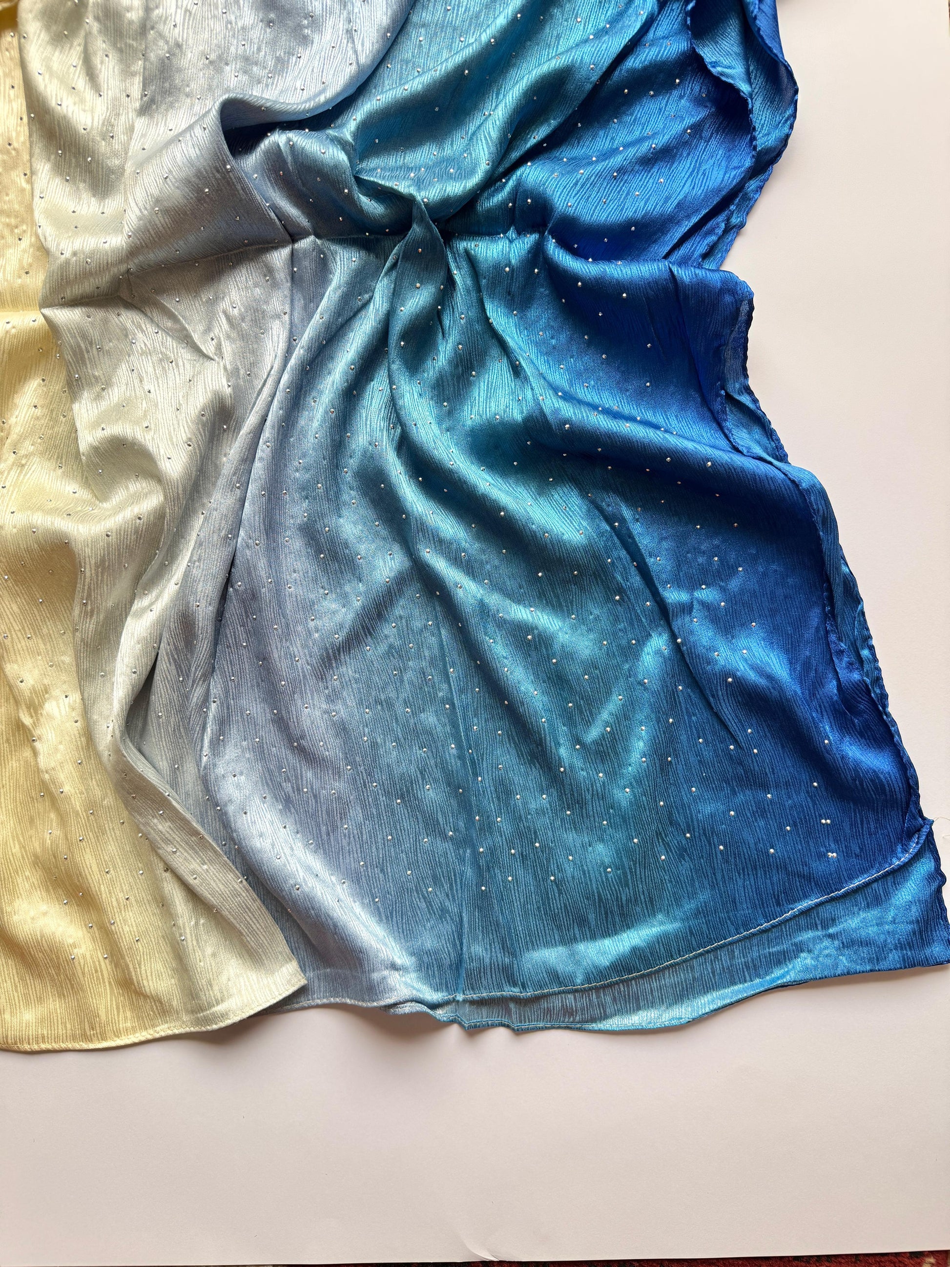 Elevate your style with our luxurious Ombre Silk Satin Hijab. This exquisite piece boasts a delicate self-print and is adorned with shimmering stones. With 18 breathtaking color options to choose from, you'll find the perfect match for any formal event
