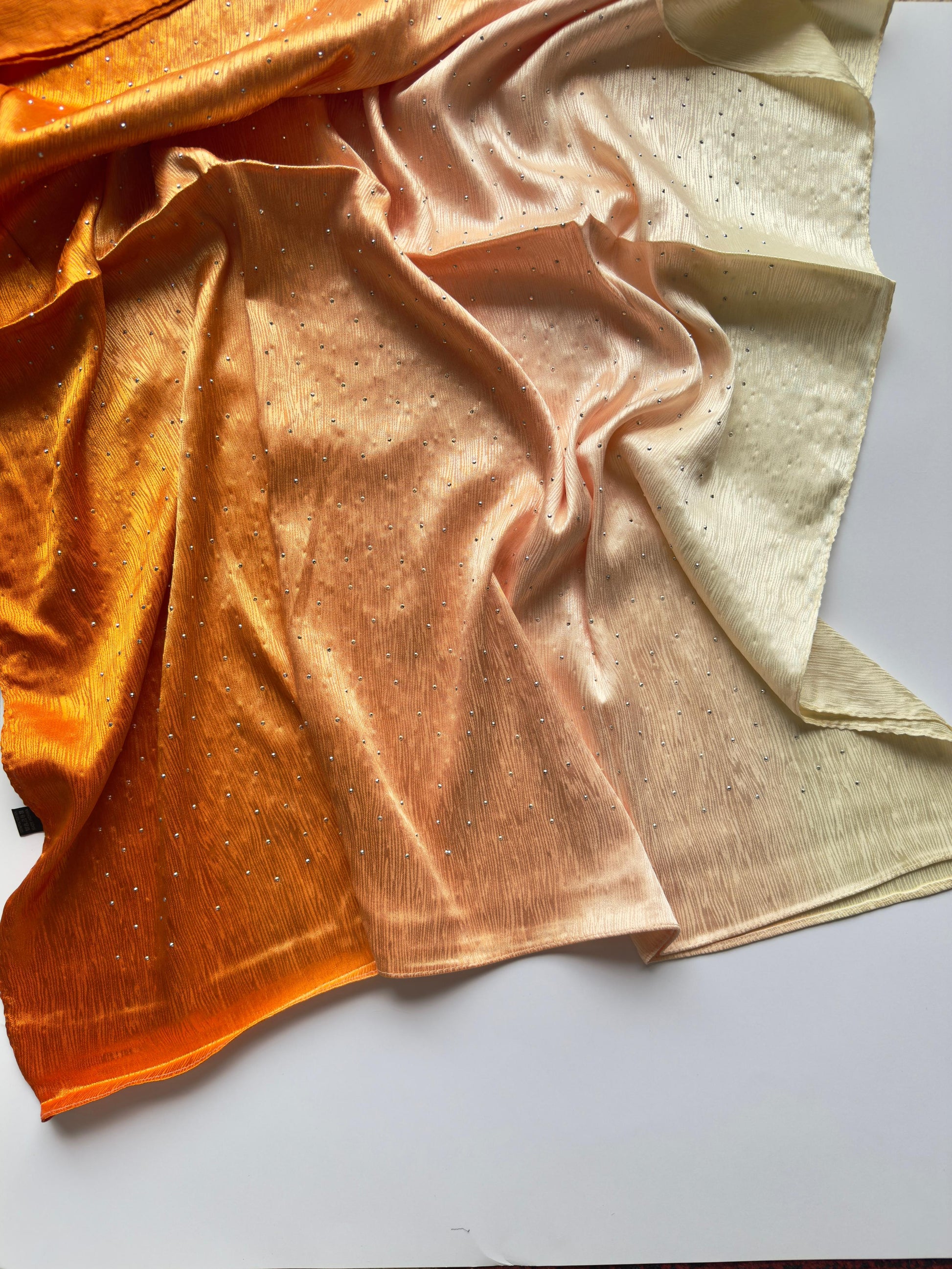 Elevate your style with our luxurious Ombre Silk Satin Hijab. This exquisite piece boasts a delicate self-print and is adorned with shimmering stones. With 18 breathtaking color options to choose from, you'll find the perfect match for any formal event