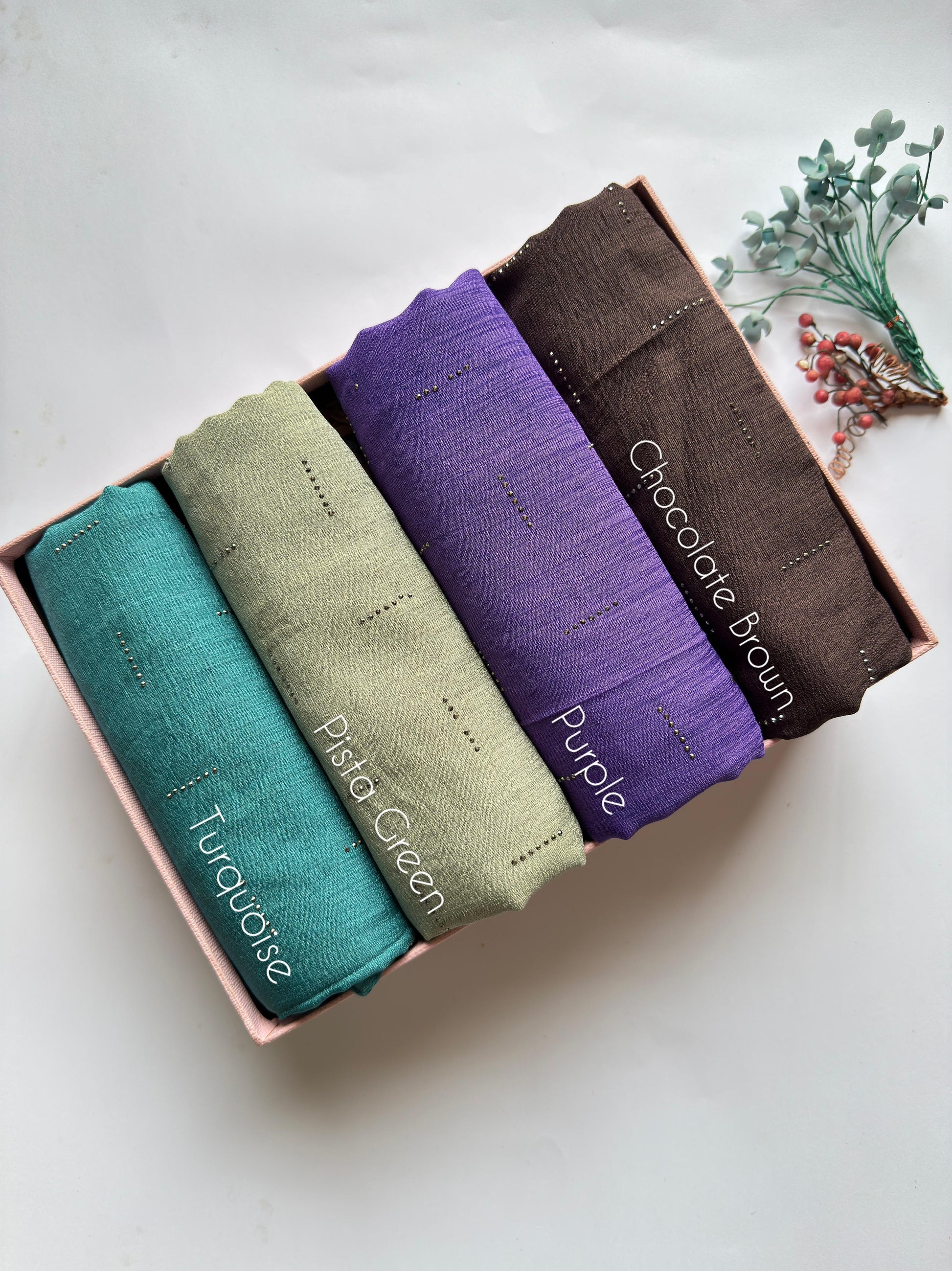 ✨ Elevate your look with our luxurious, stone-studded raw silk hijab! ✨ Available in 12 stunning shades, this hijab drapes beautifully and adds a touch of shine to any outfit. Get ready to turn heads!